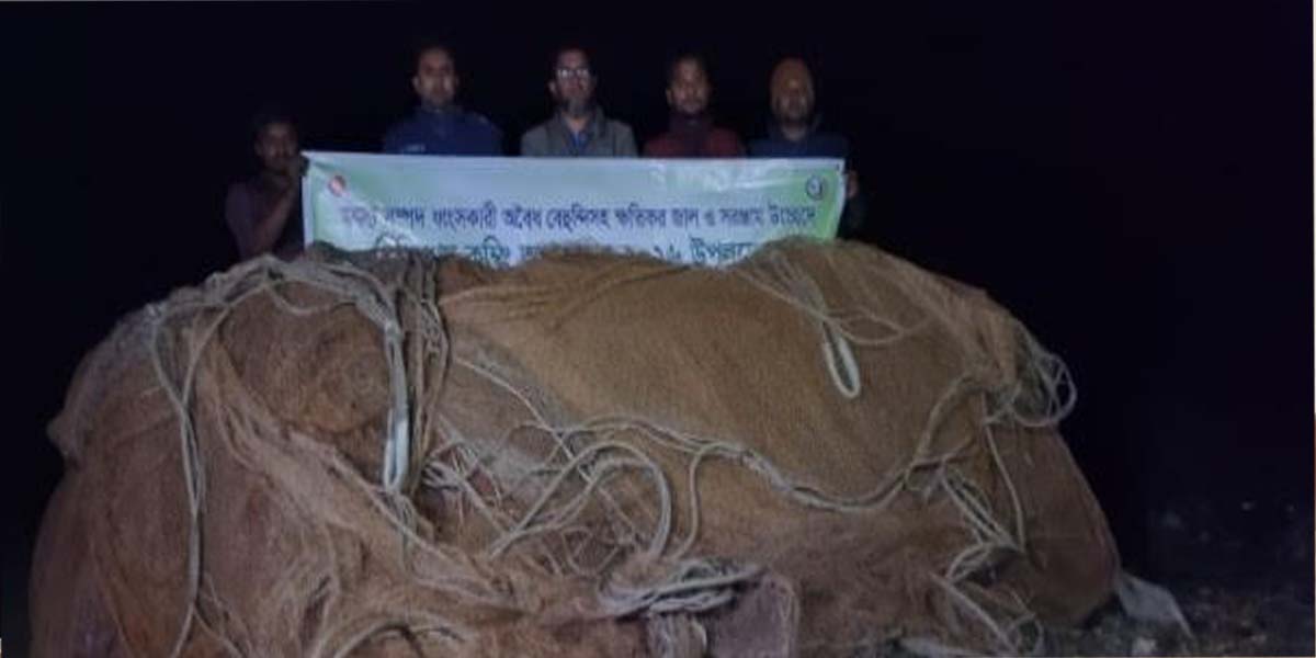 ভোলার লালমোহন উপজেলায় বিপুল পরিমাণের অবৈধ জাল জব্দ করা হয়েছে। শনিবার রাত থেকে ভোর রাত পর্যন্ত উপজেলা মৎস্য দফতরের বিশেষ কম্বিং অপারেশনের চতুর্থ ধাপের ষষ্ঠ